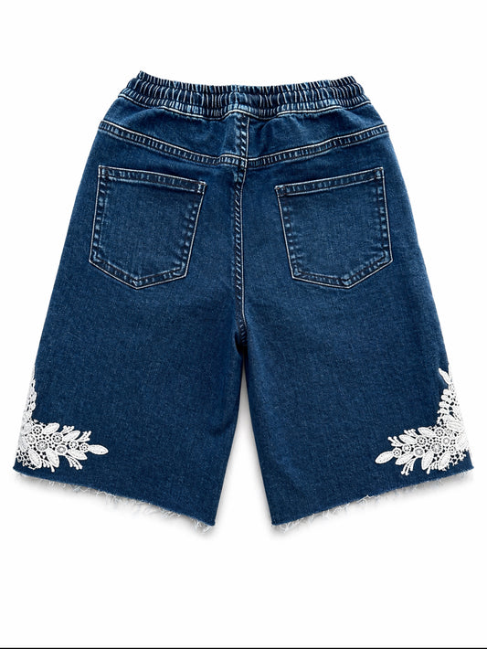 Denim Lightweight Shirt with Pearls and Embellishments